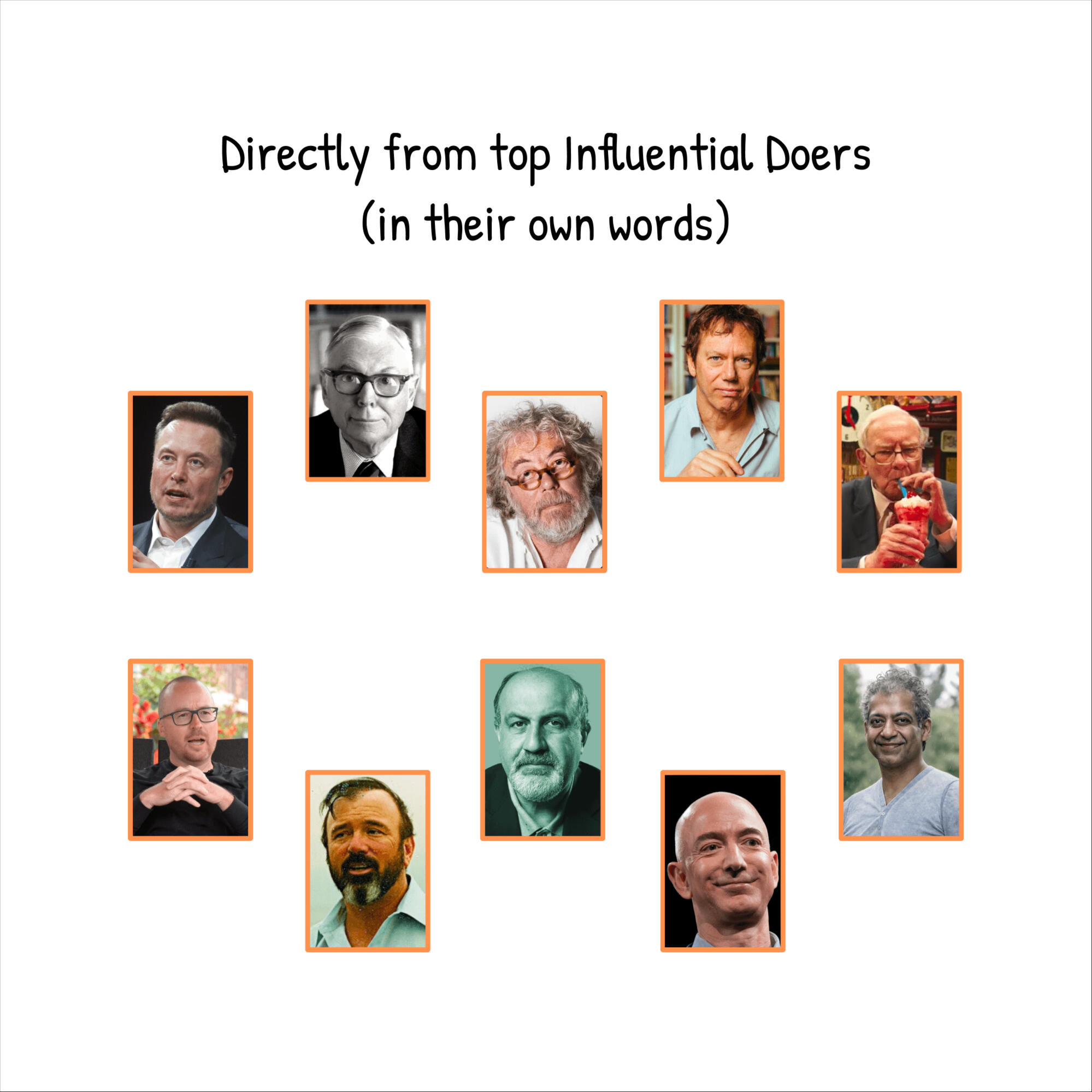 Free Ebook (140-page PDF) with 43 Nuggets from top Influential Doers and Entrepreneurs (in their own words), added 🎆 visuals (to make it super easy to understand), and my own 💠reflections."The Doers are the major Thinkers."
